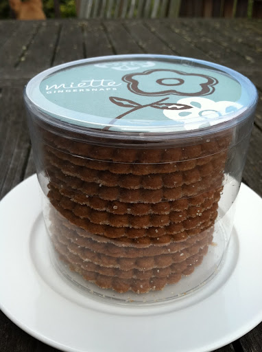 Luscious ginger flavored cookies, perfectly molded, dusted with sugar and stacked in a cute container for your enjoyment! These cookies were delicious, and the ginger flavor was not overwhelming. They had a bit of a crunch and a faint nutty flavor. No wonder these morsels made the 7X7 Big Eat list!
