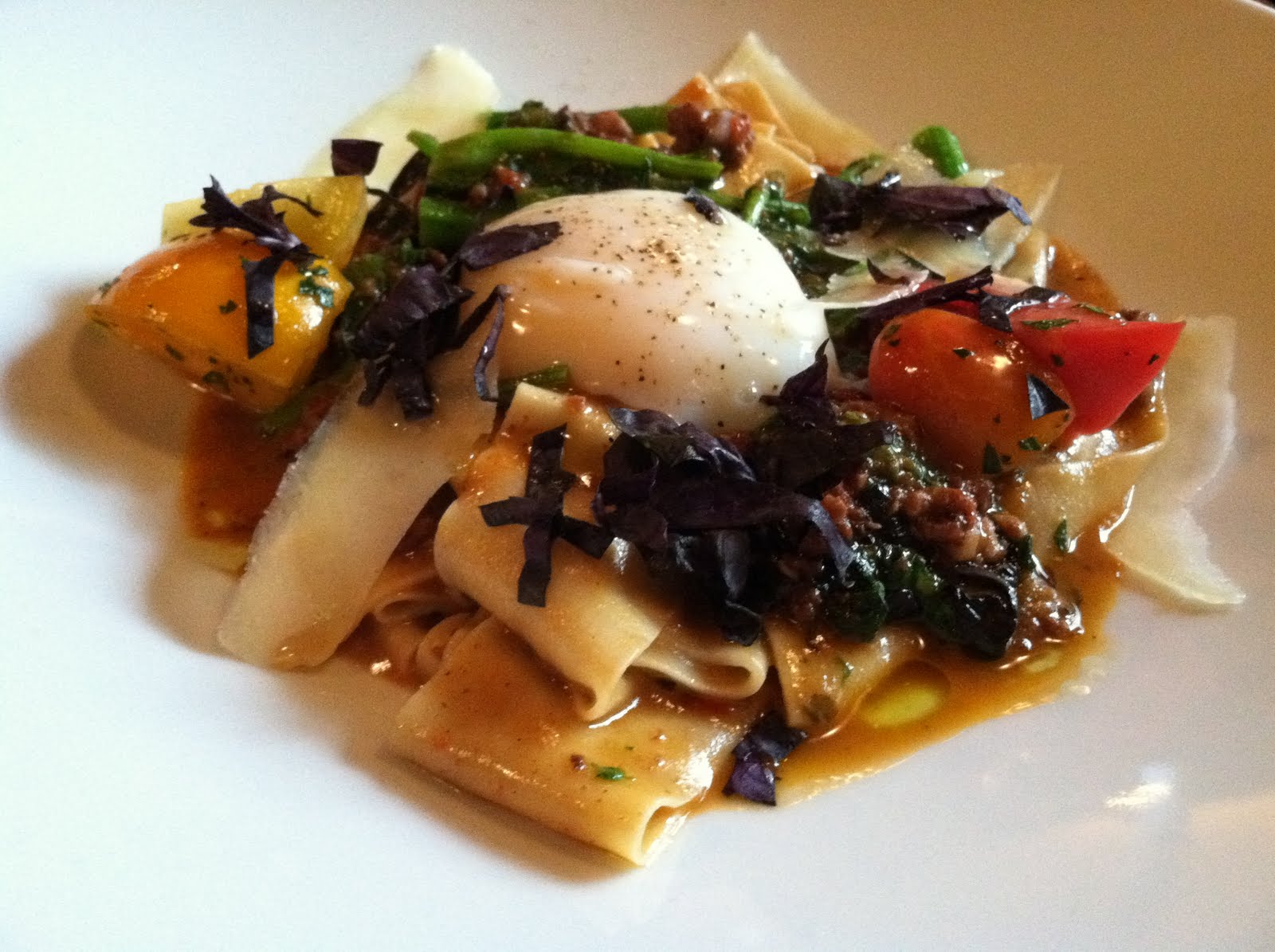 Served with butter beans, greens and a salsa verde. I’m not sure what were the purple leaves. $20