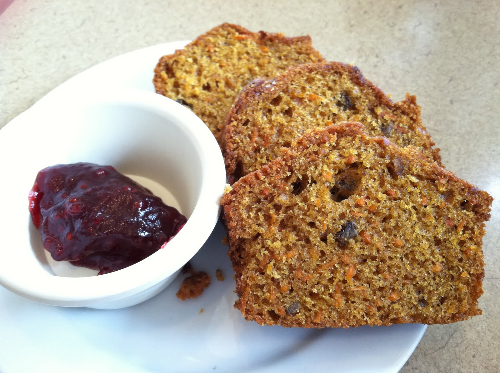 Mini carrot bread – Home Posted on July 27, 2011 by vicentesf Reply Breakfast mini carrot bread with raspberry jam. Home, San Francisco