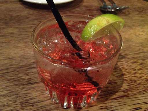 Marinated beef ternderloin, wok seared with onions and peppers. Topped with fresh cilantro and served with a side of pickled carrots and radish(?). Part of Chef’s tasting menu. $25 per person