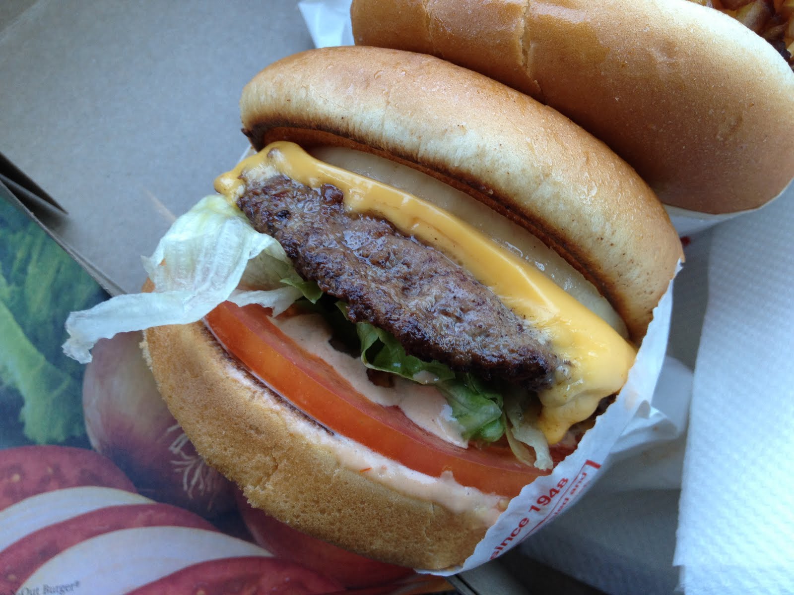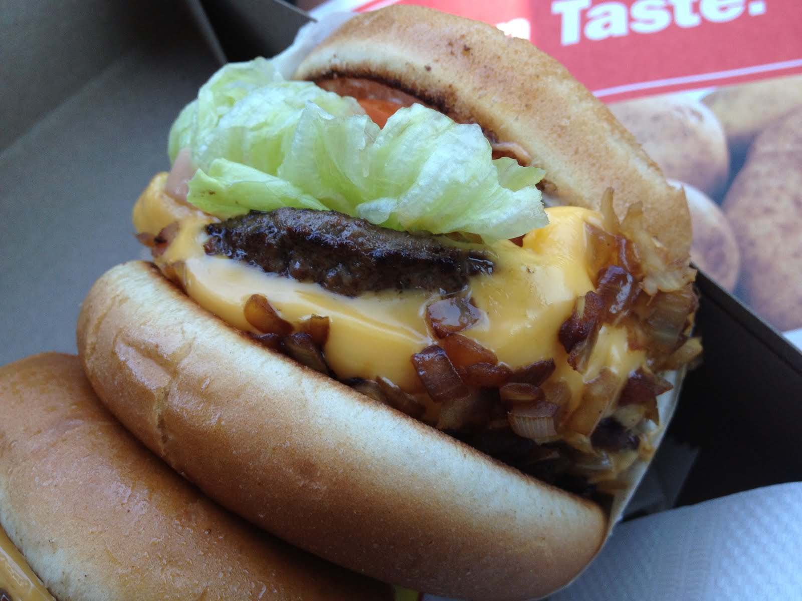 Fresh ground Niman Ranch beef patty cooked medium well, a little pink inside when served with American cheese, lettuce, tomatoes, pickles, and a secret sauce on a toasted egg bun. $7.99