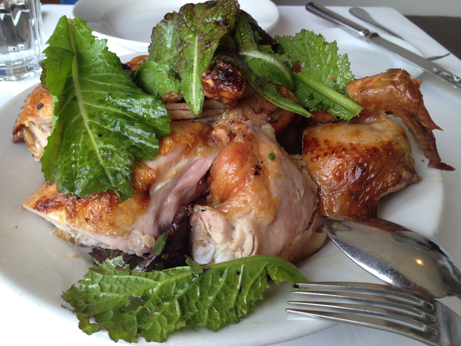 This is hands-down the best chicken I’ve EVER had! It was definitely worth the hour long wait. You better be dining with someone you like because you have plenty of time to chat while you wait for this amazing plate of food! The chicken is SO moist and flavorful and the warm bread salad soaks up all the yummy juices and drippings. I’m not sure what the greens were, but it was a hearty variety and held up nicely to the rich chicken and bread salad. I greedily ate a portion and nibbled on some more before getting the rest boxed up. Silverfox picked off the skin because he’s a healthy eater, so I helped myself to it, lol! The skin was the best part!