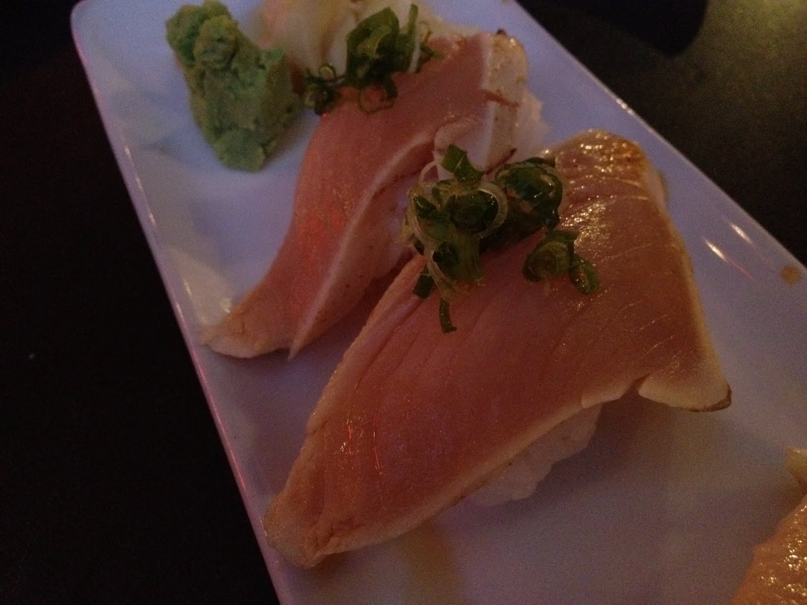 Albacore nigiri.  Surprise, it comes seared!  No doubt to kill anything on the outside of this not-so-fresh cut of fishy fish.  $3.95 happy hour