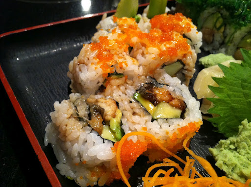 Wow, this roll was frickin’ amazing! I loved the heat from all the spicy components, and it looked pretty cool too. I thought I would experience Montezuma’s revenge afterward, but I didn’t – hehe! The lightly seared sea bass tasted great and had a great texture. The chili aioli was so flavorful and I loved the pale yellow color of it. The sliced chiles added extra heat and flavor. Not sure I could really distinguished the gobo (burdock root), but I actually didn’t know what it was when I ordered the roll. I will definitely order this delicious roll again!